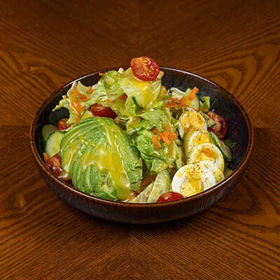 Fried salmon, cucumber, avocado with