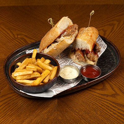 served with french fries.