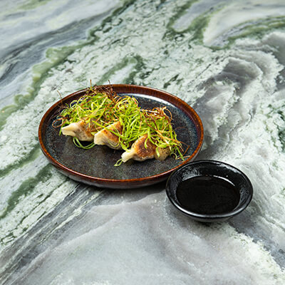 Sea bass, spring onion and white ponzu