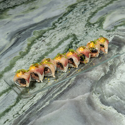 Hamachi, braised shitake, avocado, spicy mayo