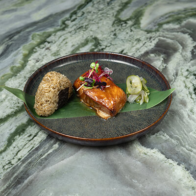 Seared sake with sweet true soya