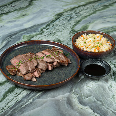 Japanese rice top with pan-seared beef